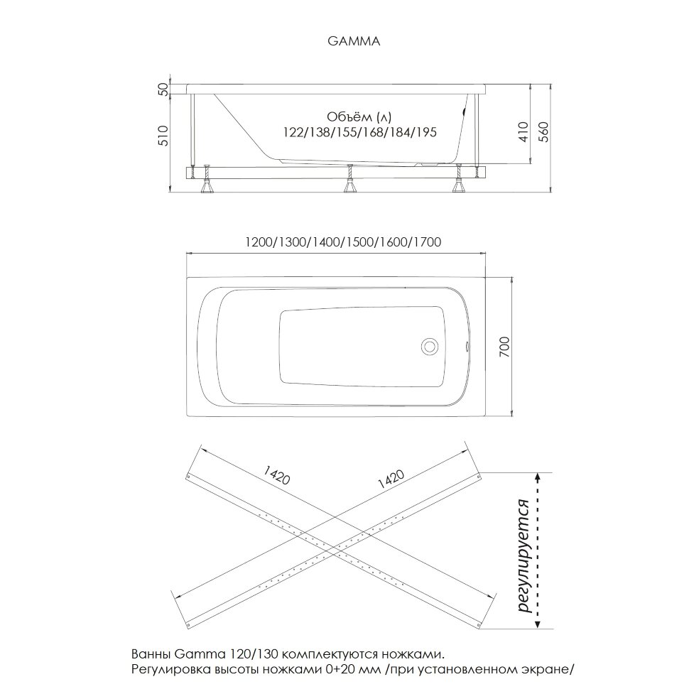 Широкий размерный ряд позволяет разместить ванну в санузлах разной площади.