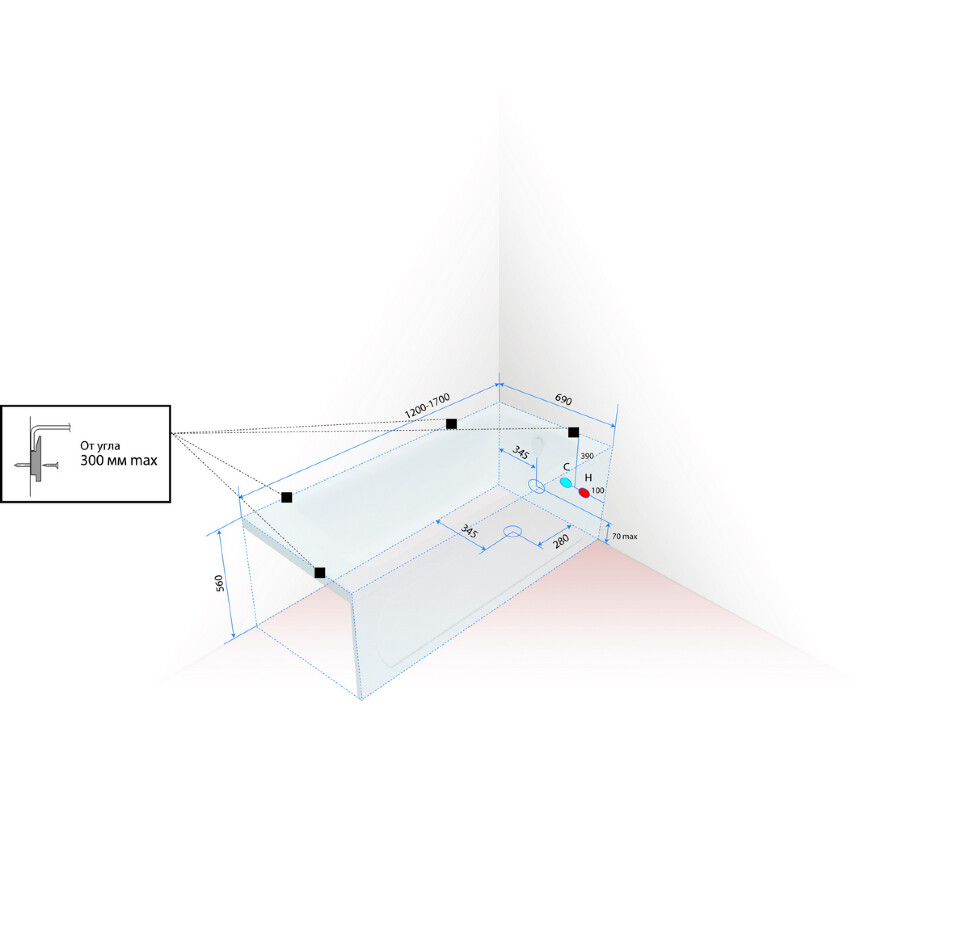 Широкий размерный ряд позволяет разместить ванну в санузлах разной площади.