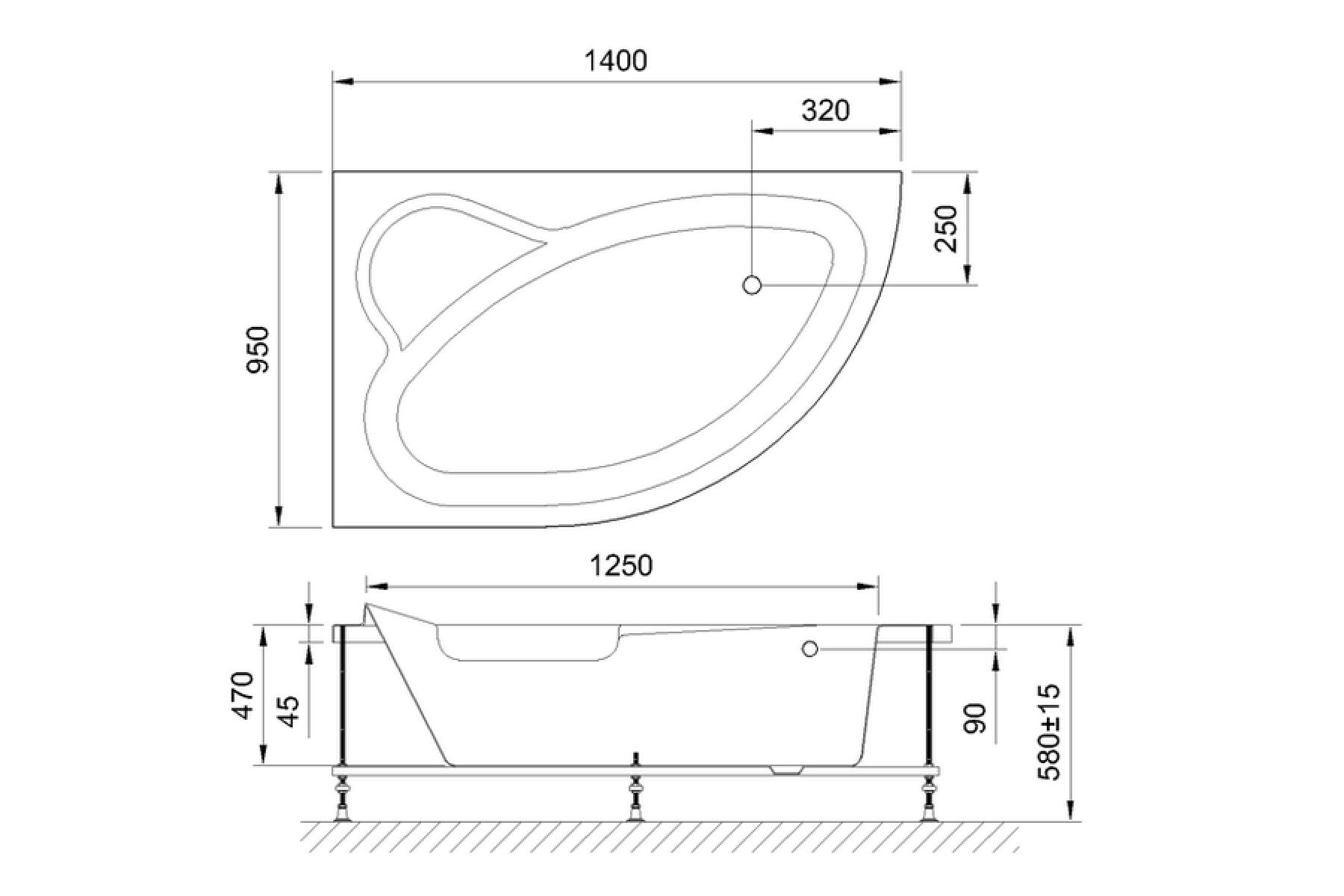 Акриловая угловая ванна ALPINE 140x95x58 имеет ассиметричную форму с четкими линиями изгибов что позволяет ей отлично гармонировать практически в любом интерьере. Анатомическая, округлая форма чаши позволяет комфортно разместиться в ней одному человеку, а диагональное расположение позволяет разместить в углу просторное сидение.