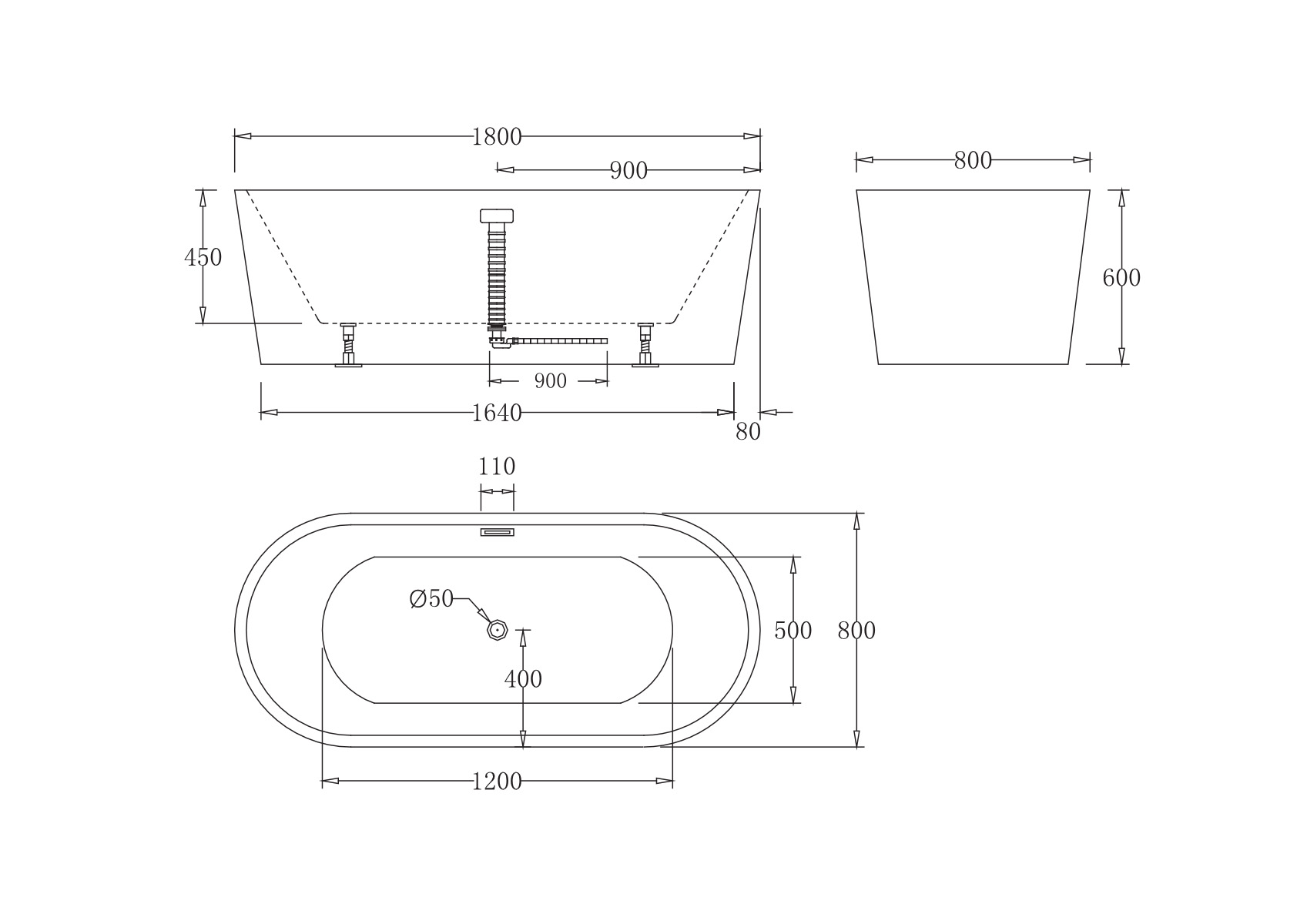 Отдельностоящая акриловая ванна.