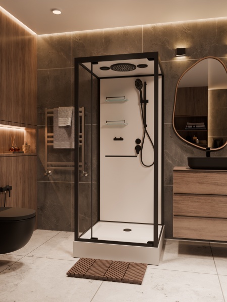 Душевая кабина Frank 400 серии. Это бессиликоновая сборка, резьбовые соединения на смесителе и душе, двойные ролики с повышенной износостойкостью , металлические магниты на дверях, стеклянная крыша. Неповторимые душевые кабины Frank с качественной фурнитурой способны сильно подчеркнуть стиль ванной комнаты.