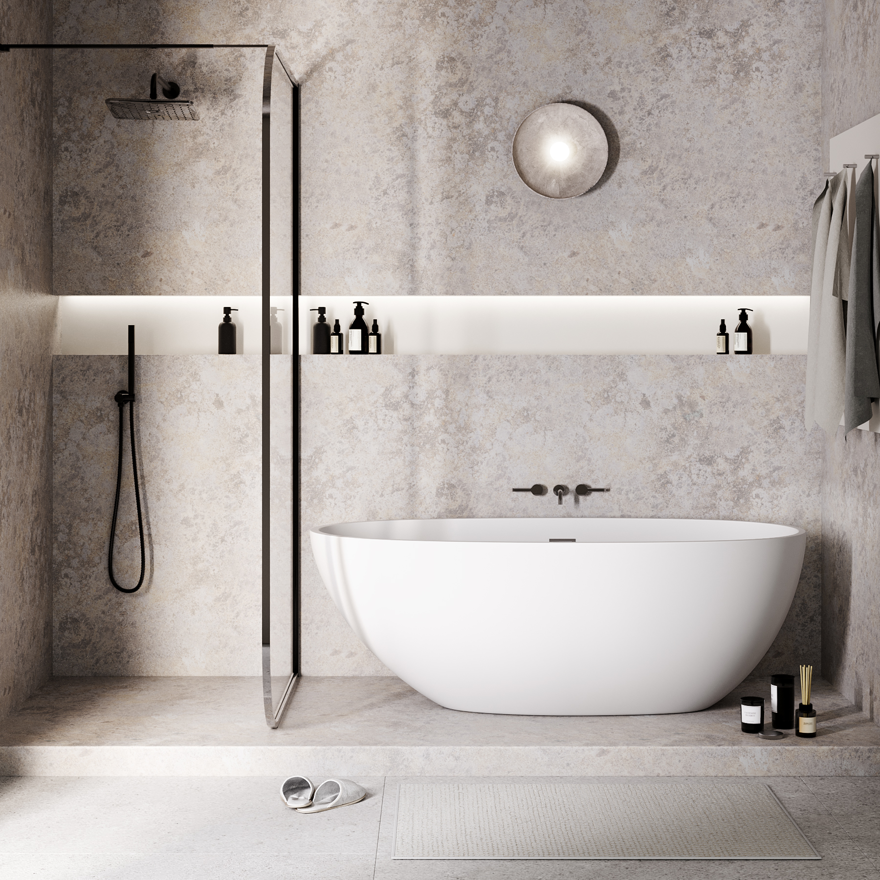 Ванна изготовлена из акрилового листа толщиной 5 мм, что обеспечивает прочность и долговечность изделия. Акриловый материал также приятен на ощупь и сохраняет тепло воды на длительное время, создавая комфорт при принятии ванны. Ванна выполнена в черном матовом цвете.
