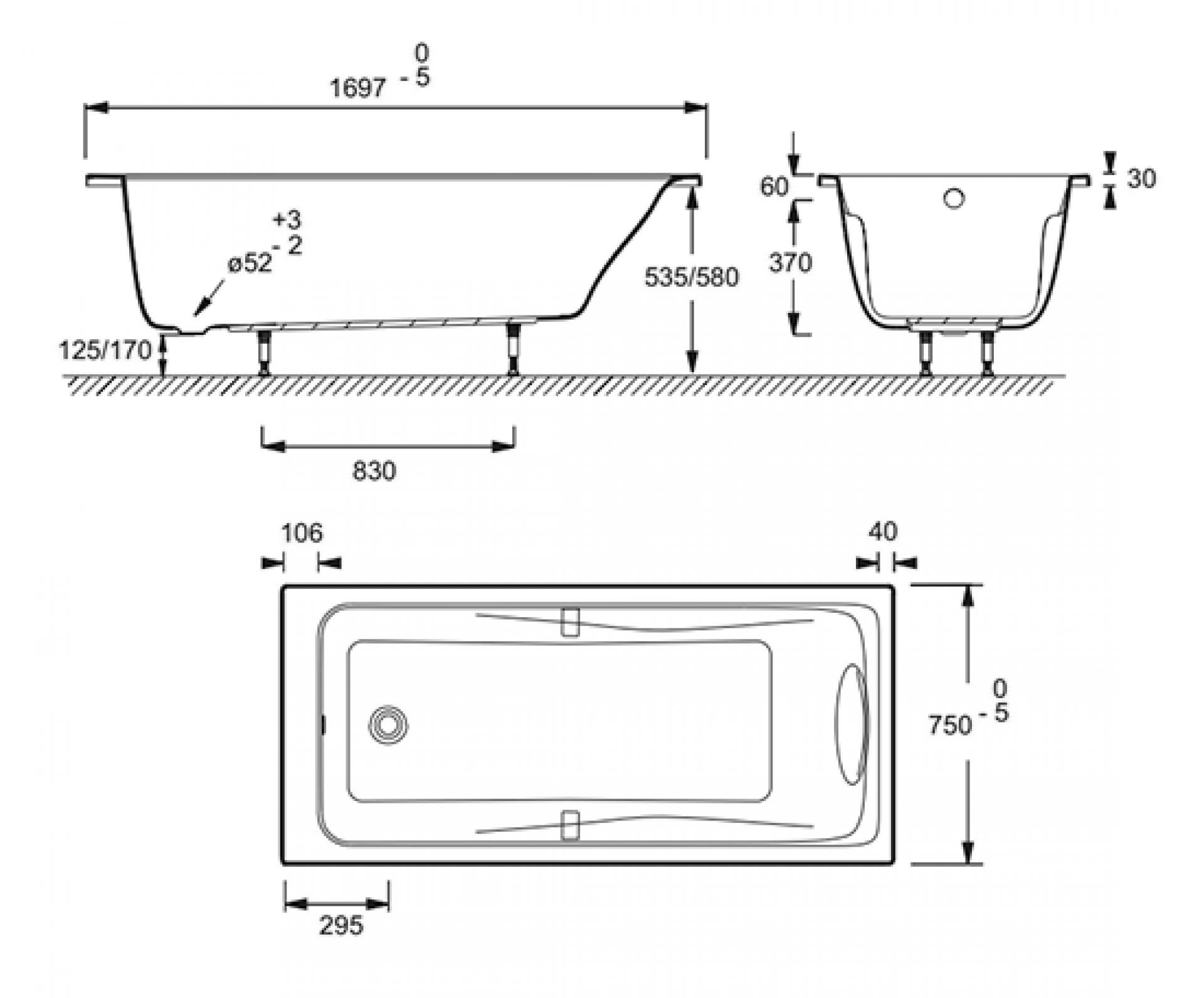 Изготовлена из литьевого акрила. Низкая теплопроводность повышает комфорт принятия ванны. Гладкая, не скользкая и теплая на ощупь поверхность. Эффективное звукопоглощение. Прочность в сочетании с малым весом.