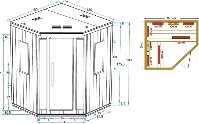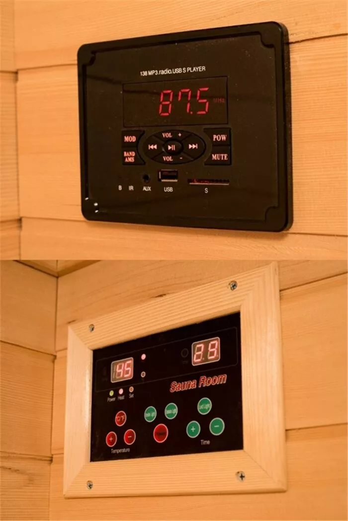 | Особенности | Аудио система, Ионизатор, Отделка снаружи из вагонки Hemlock, Цветотерапия |