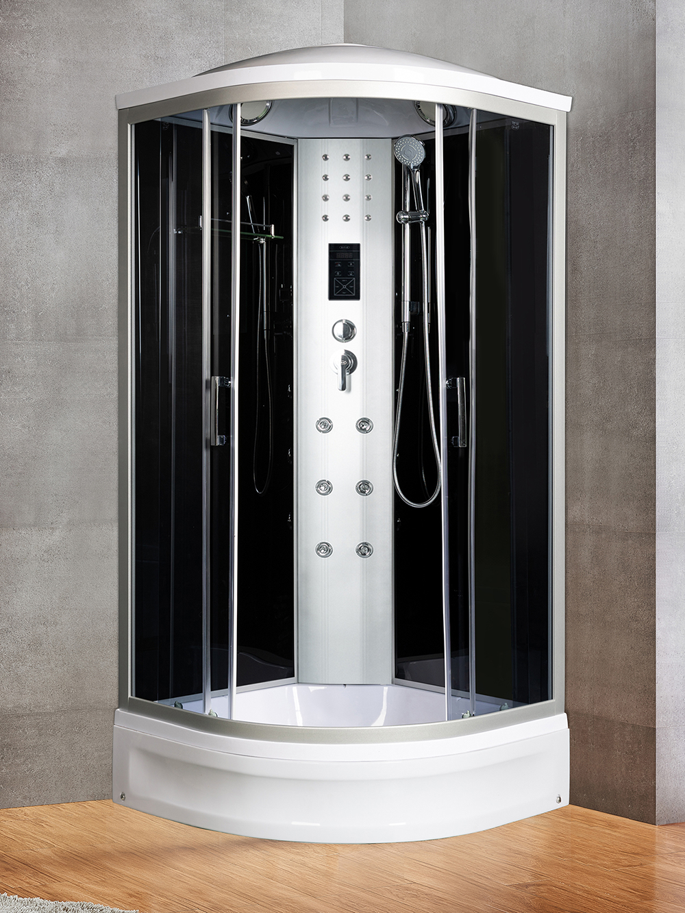| Комплектация | сифон, Вентилятор, смеситель, крыша, поддон WEMOR, полочка, верхний душ, верхний свет, динамик, центральная стойка, пульт управления, радио, г/м форсунки, штанга, ручной душ, телефон |