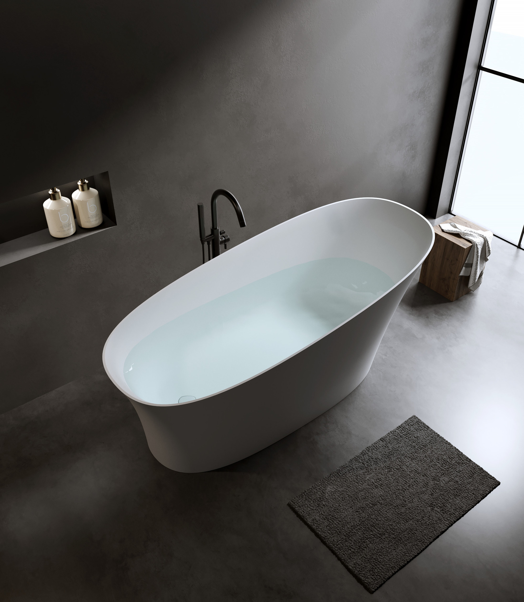 Поверхность ванны приятная на ощупь и не холодная благодаря низкому уровню теплопроводности, что делает процесс эксплуатации очень приятным.