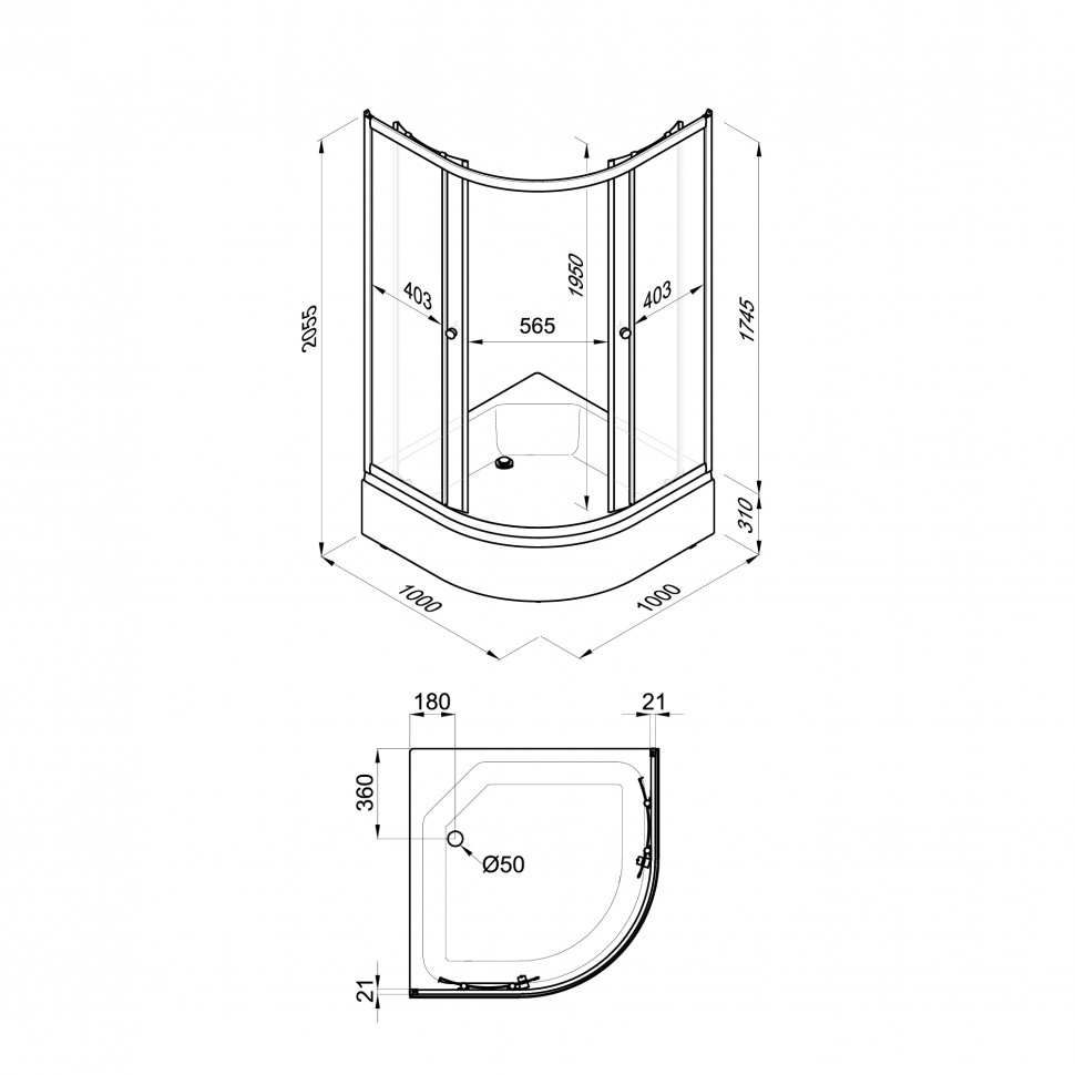 | Комплектация | Комплект передних стёкол||Комплект направляющих||Поддон душевой со съёмным экраном||Каркас для поддона стальной||Сифон (без гофры) |