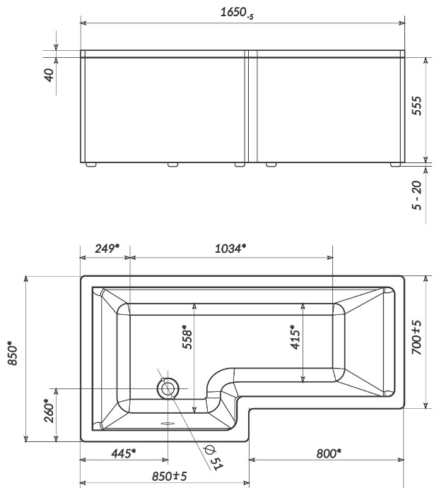 Асимметричная ванна Linea - отличный выбор для людей, предпочитающих принимать душ, но не желающих отказываться от комфорта купания в ванне. Ширина душевой зоны 85 см, что позволит удобно принимать душ человеку любой комплекции, ширина узкой части - 70 см, что соответствует ширине обычной ванны