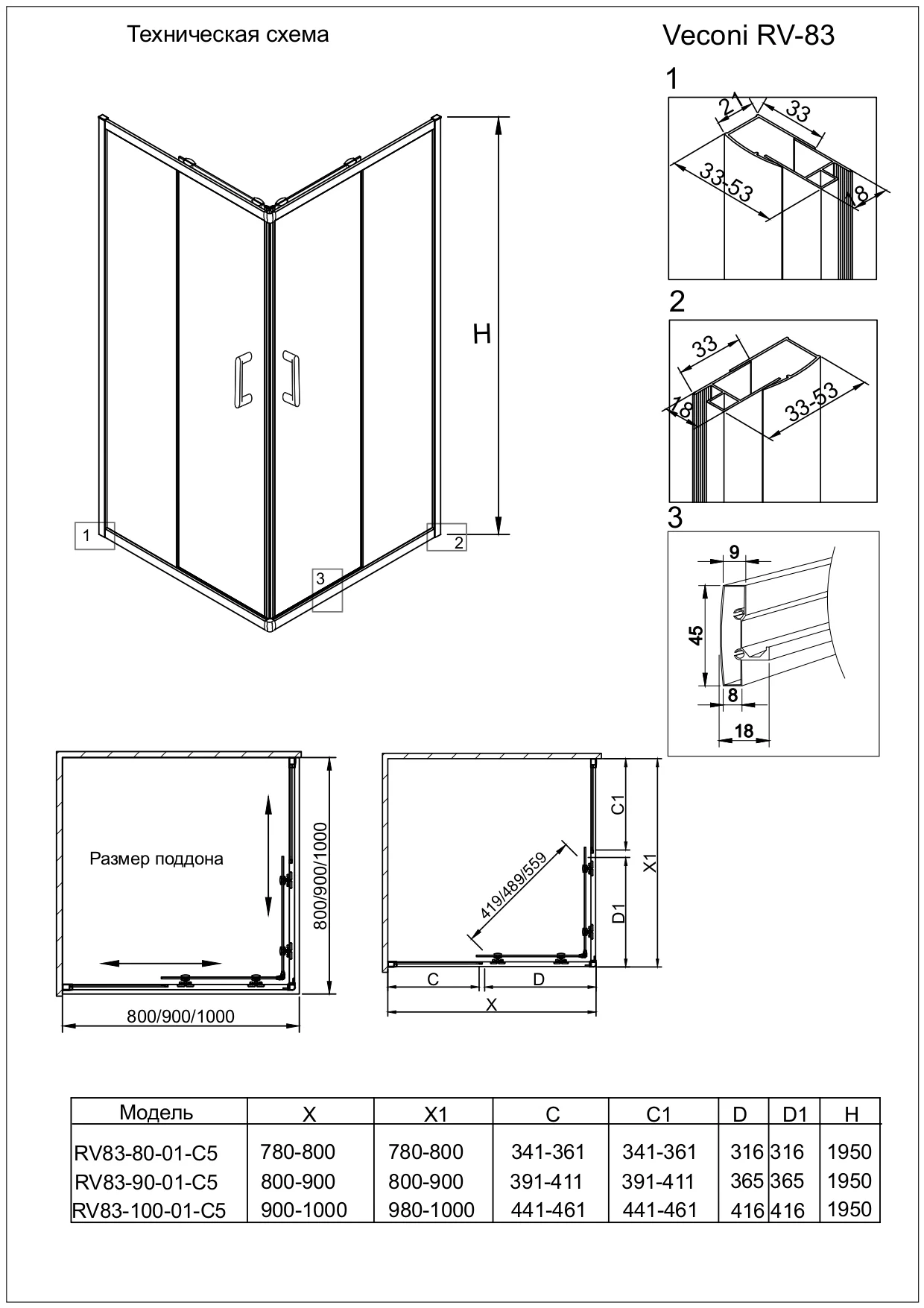 | Поддон в комплекте | Нет |